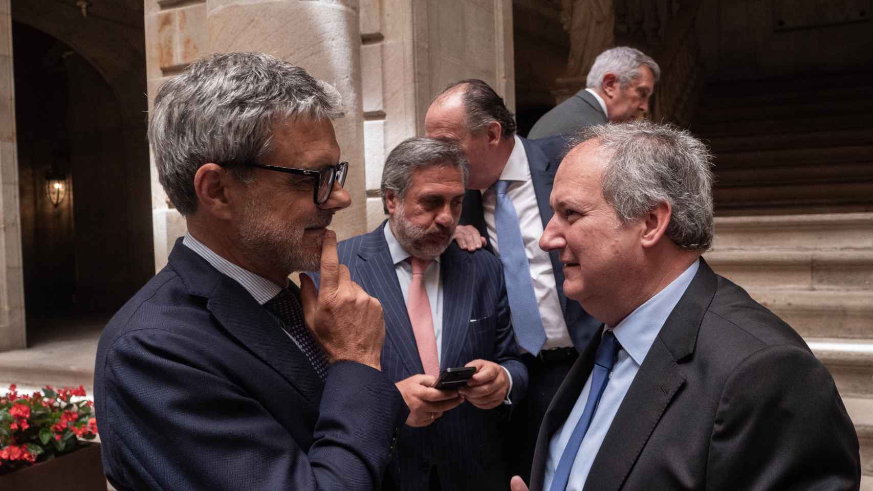 El presidente de Barcelona Oberta y miembro de Eines de País, Gabriel Jené, habla con el presidente de Pimec, Antoni Cañete