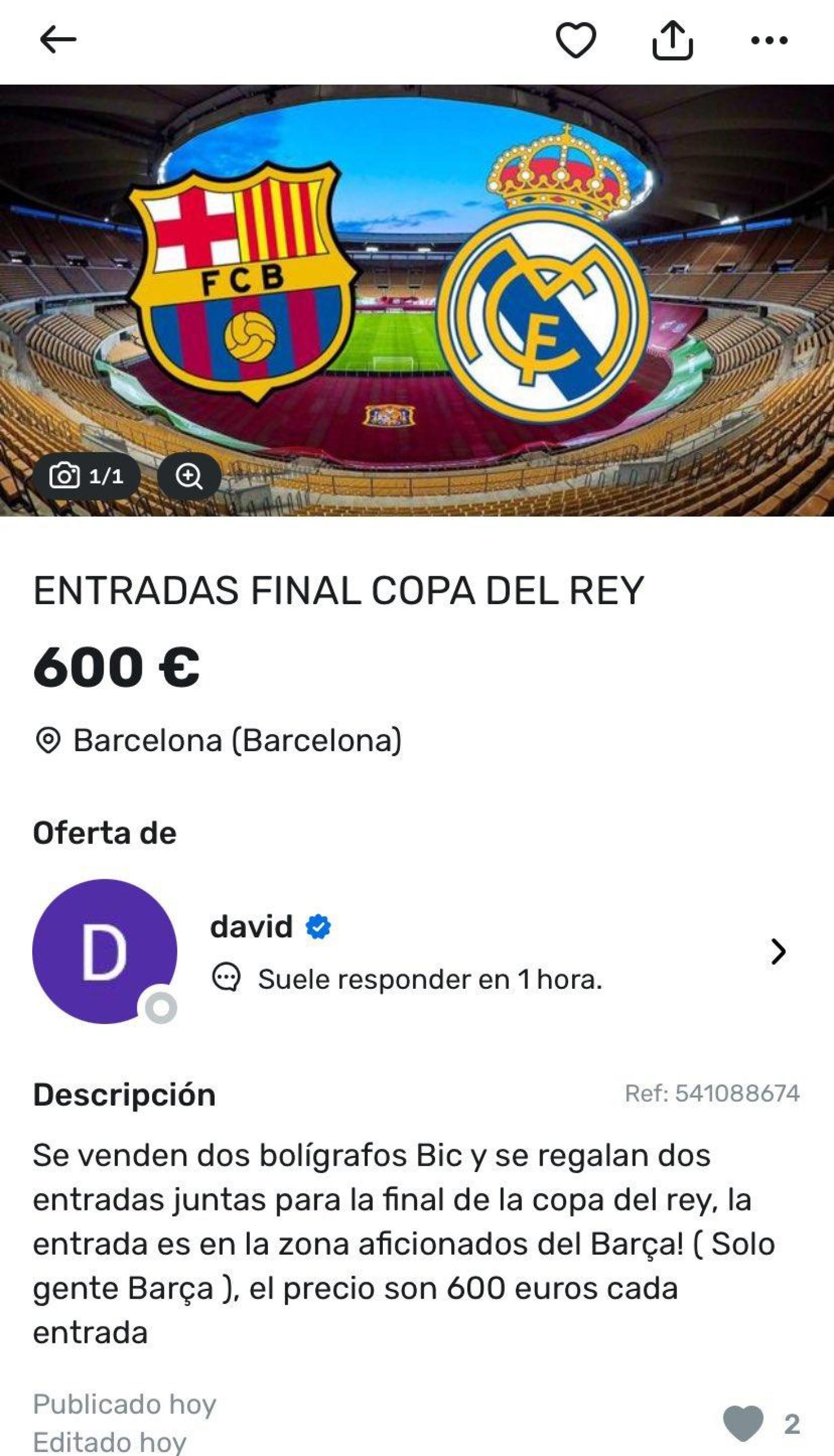 Reventa de una entrada para la final de Copa del Rey entre Barça y Madrid (2) REDES
