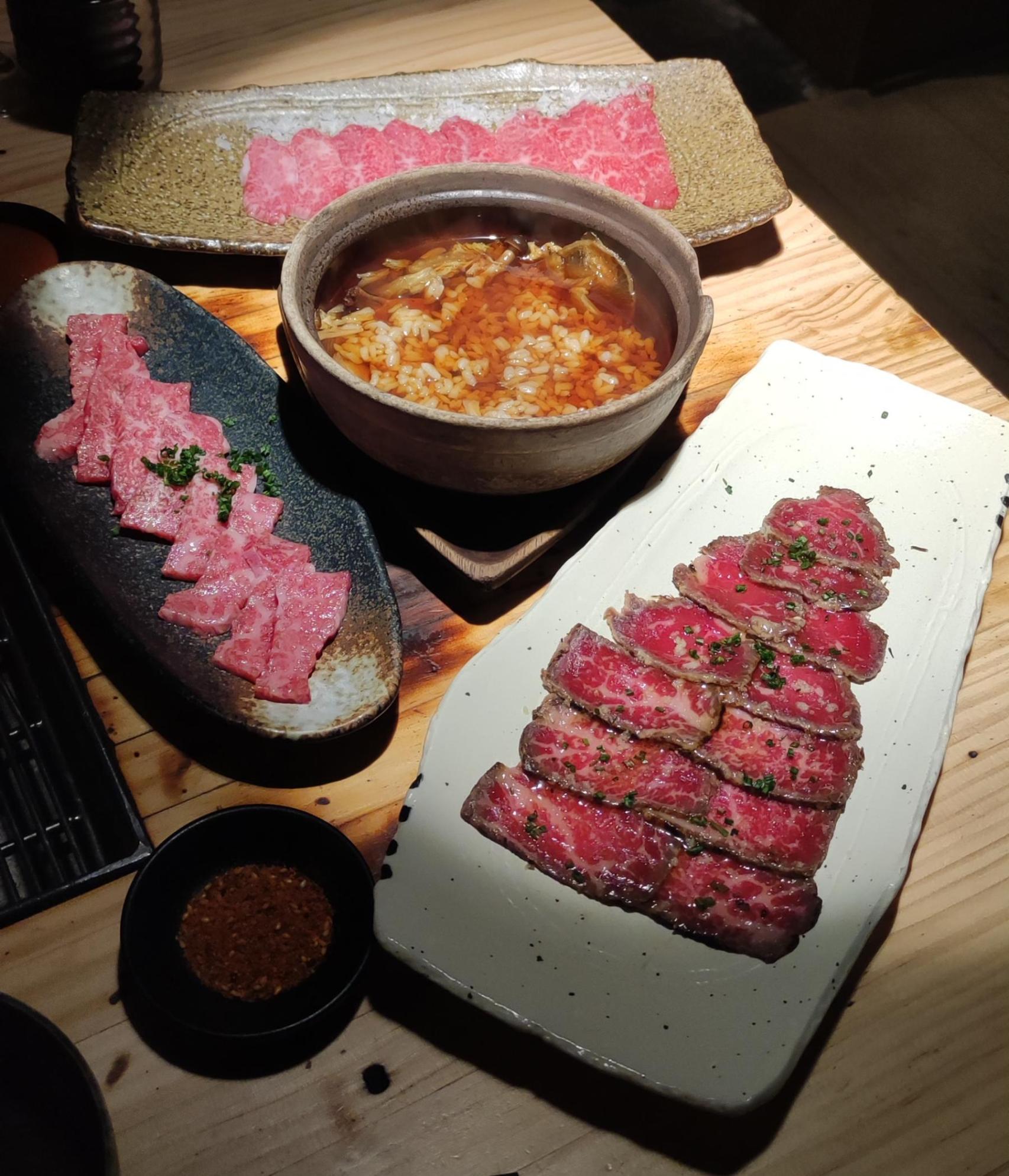 En primer lugar, dispone del Menú Akaneya, de 79,90 €, ideal para una primera visita y descubrir una experiencia sumibiyaki completa, con degustación de Kobe Beef A5. El comensal disfruta de platos típicos japoneses y una amplia gama de carnes waygú a la barbacoa, además de pescado fresco y verduras.