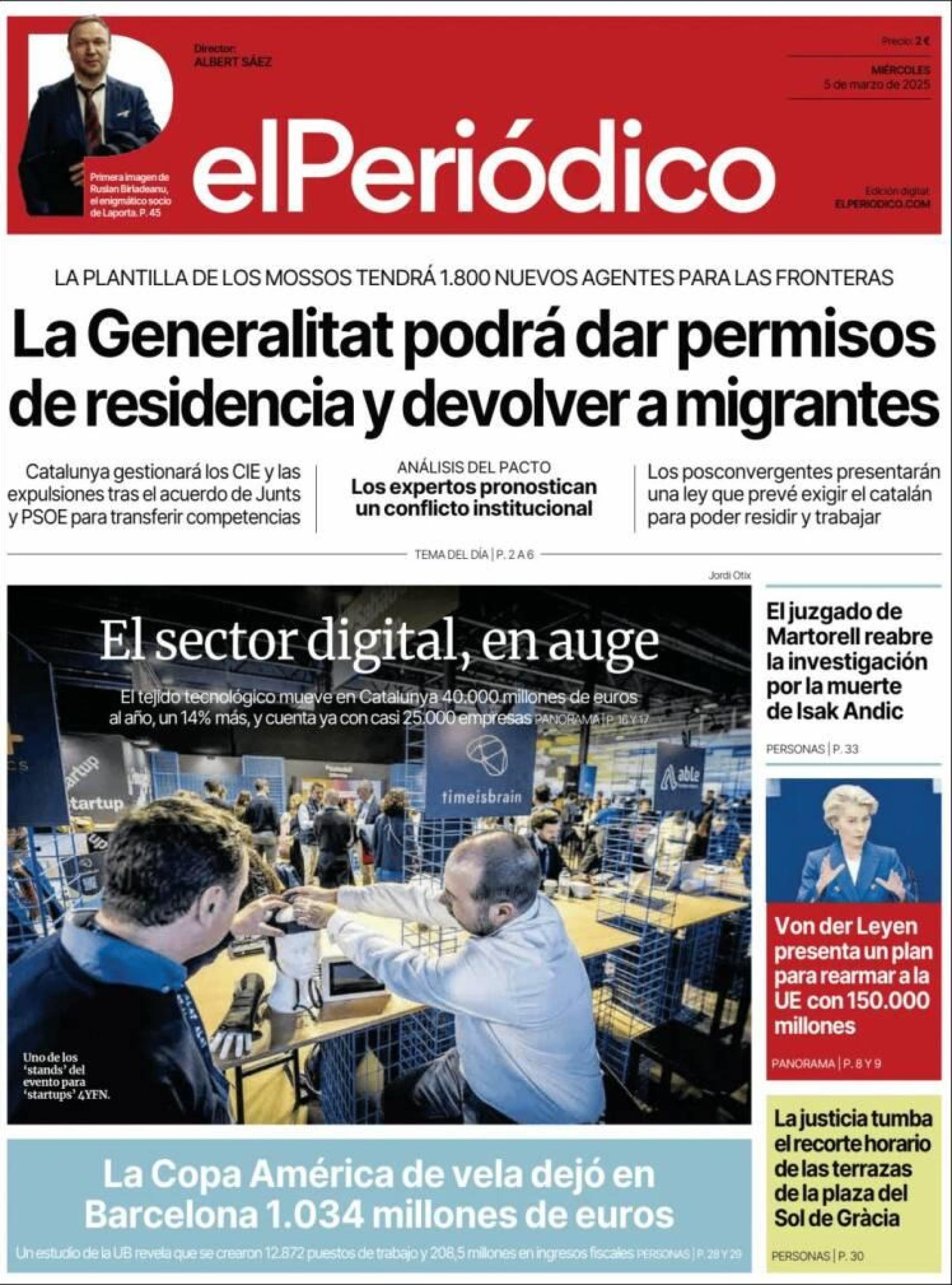Portada de 'El Periódico' a miércoles 5 de marzo
